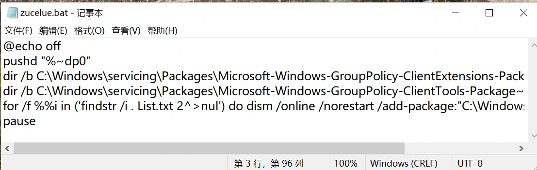 dir /b C:\Windows\servicing\Packages\Microsoft-Windows-GroupPolicy-ClientExtensions-Package~3*.mum >List.txt