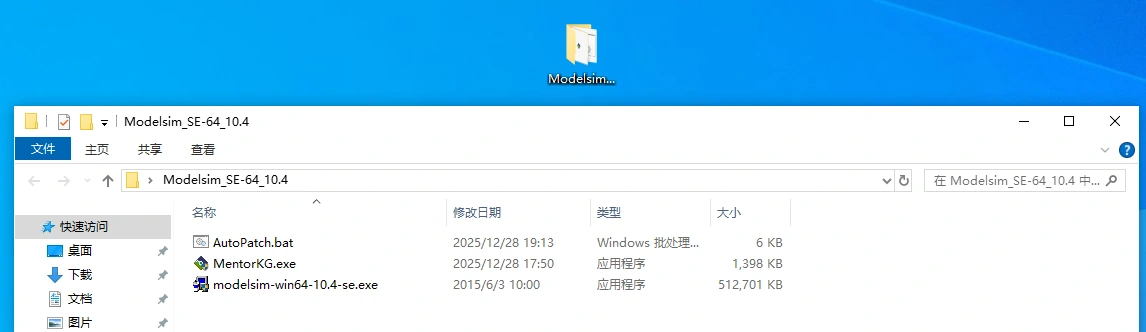 将压缩包中的Modelsim_SE-64_10.4文件夹完整解压出来,得到如下图的文件。